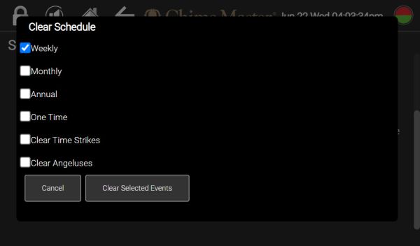 Clear Schedule allows you to keep your seasonal and denominational preferences and erases your schedule including time strikes. Tap cancel to make no changes.